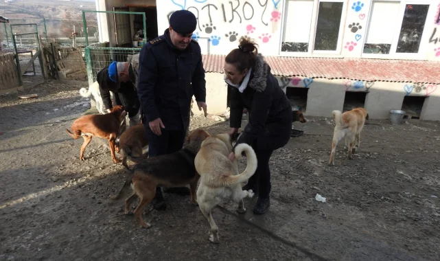 Jandarma ekipleri soğuk kış gününde sokak hayvanlarını besledi