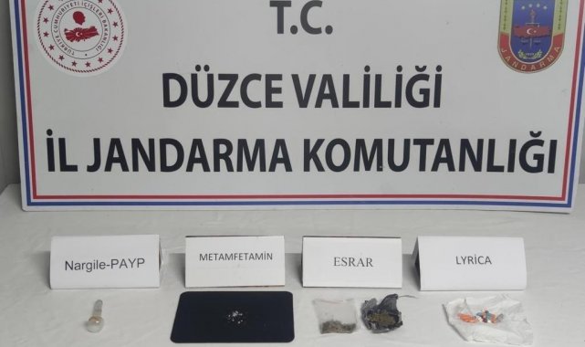 Düzce merkeze bağlı Mahmure köyü Melenpark mevkiinde yol kontrol uygulaması yapan Bayraktar Karakol Komutanlığı ekipleri, şüphelendikleri bir otomobili durdurdu. Jandarma ekipleri, otomobilde yolcu olarak bulunan H.A. isimli kadının üzerinde yaptığı aramada uyuşturucu kullanma aparatı, 7 gram esrar, 15 adet uyuşturucu hap ve yaklaşık 1 gram metamfetamin buldu. Gözaltına alınan H.A., İl Jandarma Komutanlığına götürüldü.