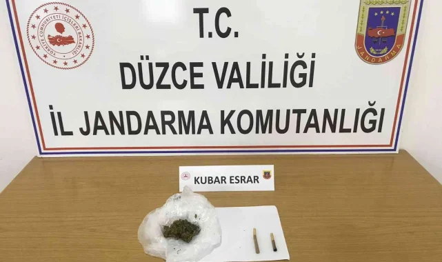 Akçakoca Jandarma Komutanlığı önünde yol kontrol uygulaması yapıldı. Jandarma ekipleri, durdurdukları otomobilde hareketlerinden şüphelendikleri sürücü Ö.E. üzerinde arama yaptı. 6.6 gram esrar maddesi ele geçiren jandarma ekipleri şahsı gözaltına aldı.
