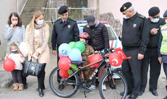 Zonguldak'ta montuna "jandarma" yazarak hayranlığını ifade eden 8 yaşındaki Mikail Demir'e, Jandarma Genel Komutanı Orgeneral Arif Çetin bisiklet hediye etti.
