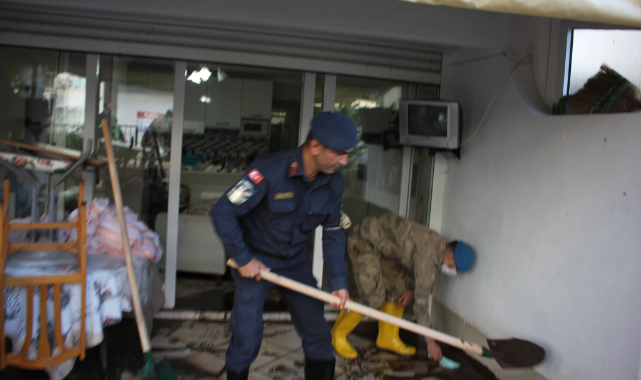 Muğla ili genelinde yaşanan şiddeli yağışların ardından evlerini işyerlerini su basan vatandaşlar kendi çabalarıyla birşeyler yapmaya çalışırlarken bir anda bahçelerinde jandarma askerlerini gören vatandaşlar ise, "Zor durumda kalmıştık, Allah onlardan razı olsun’’ diyerek Muğla jandarma tabur komutanlığından gelen jandarma askerlerine dualar ederek el birliğiyle temizleme işlemini sonlandırdılar.