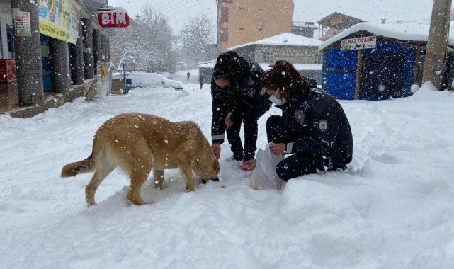 Jandarma ve polisten yüreklere dokunan hareket: Yoğun kar altında sokak hayvanlarını beslediler