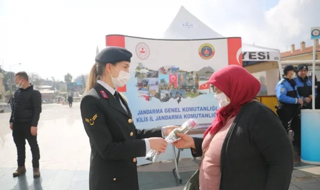 İl Jandarma Komutanlığı personeli tarafından başta şehit ve gazi anne ve eşleri ziyaret edilerek kadınlar günü kutlandı. Jandarma personeli ise Kilis Valiliği önünde stant açılarak kadınlara çiçek vererek, bilgilendirme broşürü dağıtıldı. KADES Kadın Destek Uygulaması(KADES) hakkında bilgi verildi. Jandarma Kıdemli Albay Selami Akşit, bayan jandarma personeli ile bir araya gelerek çiçek ve çeşitli hediyeler takdim etti. Ayrıca Polateli, Musabeyli ile Elbeyli ilçe Jandarma Komutanlığı ekipleri, ilçedeki şehit aileleri, gazileri ziyaret ederek çiçek takdim ettiler. Jandarma personeli kamu kurum ve kuruluşlarındaki bayanlara karanfil dağıtarak, kadınların 8 mart dünya kadınlar gününü kutladı.