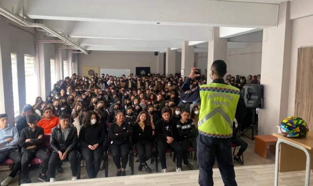 Denizli'de jandarma trafik ekipleri, 585 lise öğrencisine güvenli motosiklet sürüş kurallarını uygulamalı olarak anlattı.