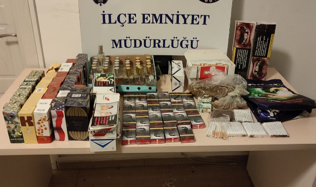 Edinilen bilgiye göre, Datça’da kaçak tütün satışının önlenmesine yönelik İlçe Emniyet Müdürlüğü ekiplerinin yaptığı çalışmalarda 3 işyerinde arama yapıldı. Yapılan aramalarda, 23 adet üzerinde herhangi bir bandrol bulunmayan makaron paketi, 7 paket makaron, 9 adet sahte olduğu oldugu değerlendirilen bandrol, 1 adet beyaz-mavi renkli kutu içerisinde muhtelif sayıda makaron, 1 adet paket içerisinde 94 gr kıyılmış tütün, 1 adet 2005 ibareli paket içerisinde 20 gr kıyılmış tütün, 1 adet şeffaf poşet içerisinde 16 gr kıyılmış tütün, 73 adet parfüm şişesi, 1adet şeffaf poşet içerisinde ağzı açık halde bulunan 210 gram kıyılmış tütün, 3 adet paket halinde ağzı acık makaron, 3 kutu üzerinde 2005 yazılı makaron ele geçirildi. Bahse konu 3 işyeri sahibi hakkında adli ve idari işlem yapıldı.