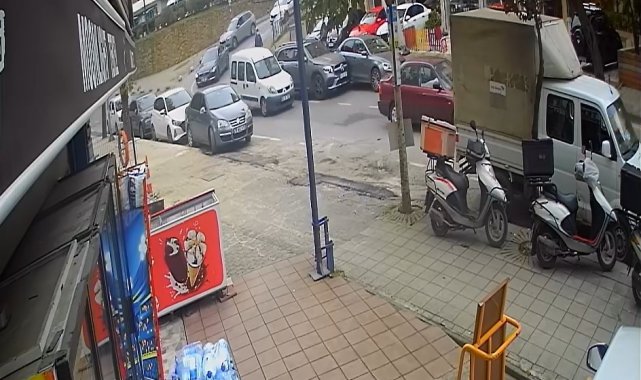 Öte yandan yaşanan kaza anı güvenlik kamerasına saniye saniye yansıdı.