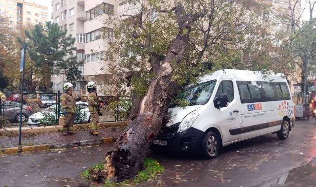 Kadıköy'de şiddetli rüzgar nedeniyle devrilen ağaç, park halindeki İBB hizmet aracının üzerine devrildi. Olayda can kaybı ya da yaralanma yaşanmazken araçta maddi hasar oluştu.