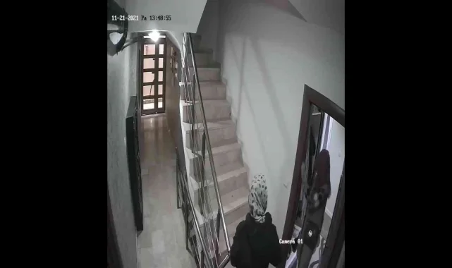 Öte yandan, kadın hırsızların etrafı keşif ettikten sonra kapıları zorlaması ve eşarpla kamerayı kapatarak parmak izlerini silmesi apartmanın kameralarına yansıdı. Olay ile ilgili soruşturma devam ediyor.