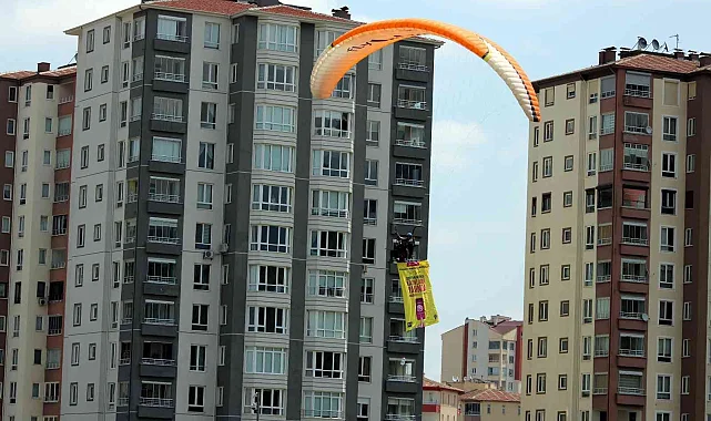 Düzenlenen etkinlikte 3 paraşütçü vatandaşlara farkındalık oluşturmak için üzerinde, 'Kayseri İl Emniyet Müdürlüğü tek tuşla şiddetin karşısında, kadınların yanında' yazılı pankartlar ile Talas Paraşüt İndirme alanına inişlerini gerçekleştirdi.