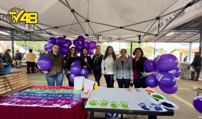Kadına yönelik şiddetle mücadelede toplumsal farkındalık oluşturmak için pazar esnafına mor balonlar ve pankartlar dağıtan ekipler, parmak boyaları ile kadınların el baskısını alarak “Kadına Şiddete Son” mesajına vurgu yaptı.