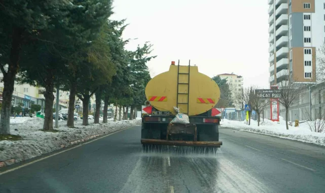 Hava sıcaklığının sıfırın altında hissedildiği Kahramanmaraş'ta; beklenen yoğun kar yağışı öncesi ana cadde, bulvar ve kavşaklarda bir yandan tuzlama çalışmaları gerçekleştiren ekipler, kar yağışı sonrası oluşabilecek buzlanma riskine önlem olarak solüsyon uygulaması gerçekleştiriyor.