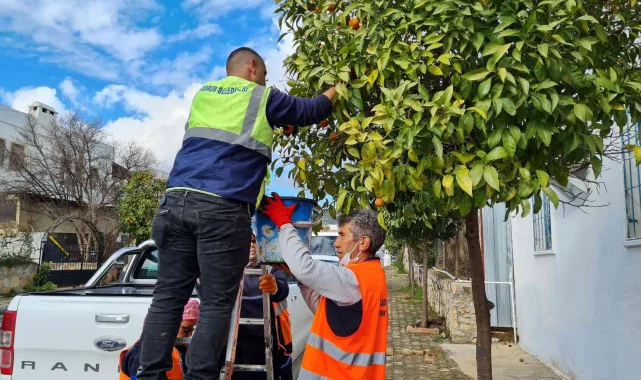 Muğla'nın Bodrum ilçesinde cadde kenarlarındaki turunçlar, belediye ekiplerince toplanılarak reçel yapılacak.