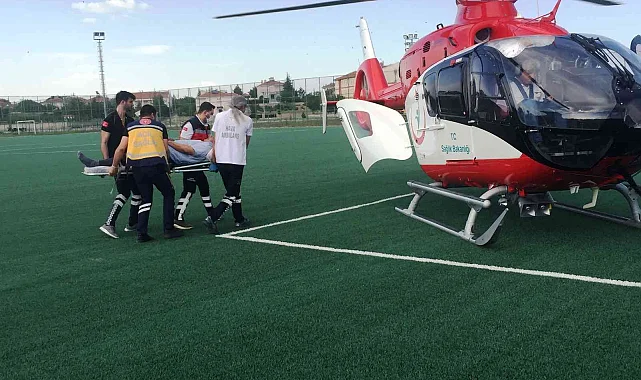 Konya'nın Kulu ilçesinde kalp krizi geçiren hasta ilk müdahalesinin ardından helikopter ambulansıyla hastaneye sevk edildi.