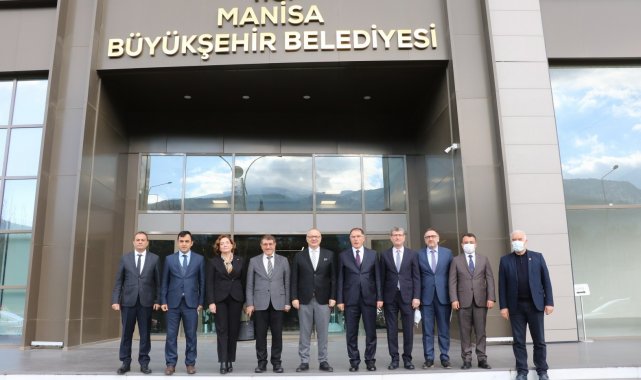 Kamu Baş Denetçisi Şeref Malkoç Manisa Büyükşehir Belediye Başkanı Cengiz Ergün ile Manisa Ticaret ve Sanayi Odası Başkanı Mehmet Yılmaz'ı ziyaret etti.