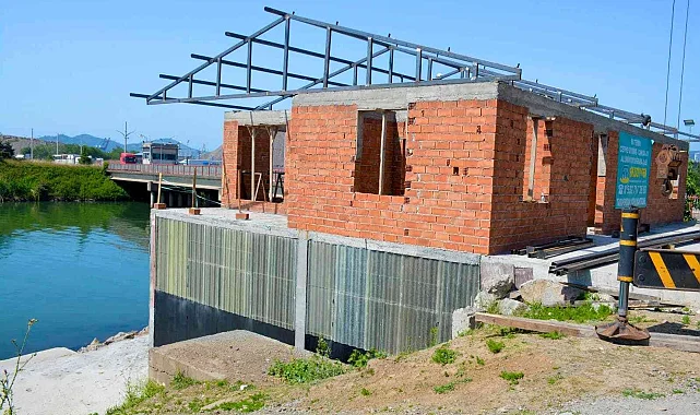 Zonguldak'ın Ereğli ilçesine bağlı Gülüç Beldesi'nde yapımına başlanan Kano Kürek Kulübü binasında inşaat çalışmaları devam ediyor.