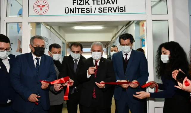 Ardından konuşan İl Sağlık Müdürü Dr. Ali Cengiz Kalkan, "Bugün burada bağışçılarımızın da destekleri ile onarılıp açılan, hizmete hazır hale getirilen ve içeride de hizmete başlamış olan fizik tedavi ünitemizi açmak için toplandık. Hayırlı uğurlu olsun" ifadelerini kullandı.