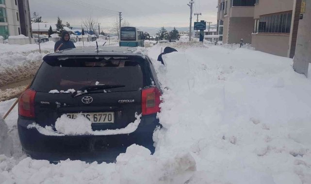 Karabük'te vatandaşlar 4 gündür etkili olan kar yağışı sonrası kar altında kalan araçlarını çıkartabildiler.