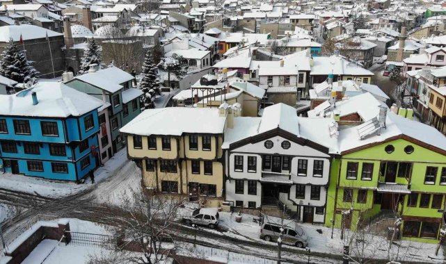 Konakların kar altında İhlas Haber Ajansı (İHA) kameramanları tarafından havadan çekilen görüntüsü karla içindeki rengarenk manzara ile eşsiz bir görüntü sundu.