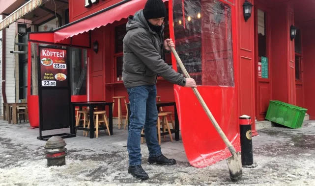 Geçtiğimiz haftadan itibaren yurdu etkisi altına alan kar yağışı hayatı olumsuz etkiledi. Eskişehir'de de etkili olan kar yağışı kesildi ve yerini soğuk havaya bıraktı. Eskişehir'de hava sıcaklığının sıfırın altında 2 ila 9 derece arasında seyretmesiyle, kaldırım ve yol kenarlarında oluşan buz kütleleri, esnafın zorlanmasına neden oldu. İşyeri önündeki zeminde oluşan buz tabakasını, küreklerle kıran esnafın mücadelesi ise devam ediyor.
