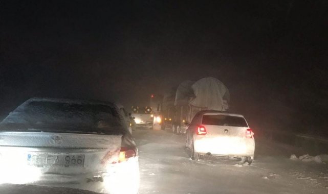 Özellikle kış lastiği bulunamayan ve zincir takmayan araçların yolda kayarak yolu tıkadığı bildirildi.