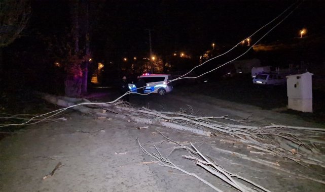 Karabük'te akşam saatlerinden itibaren etkisini sürdüren fırtınada bazı ağaçlar devrilirken, elektrik telleri koptu.