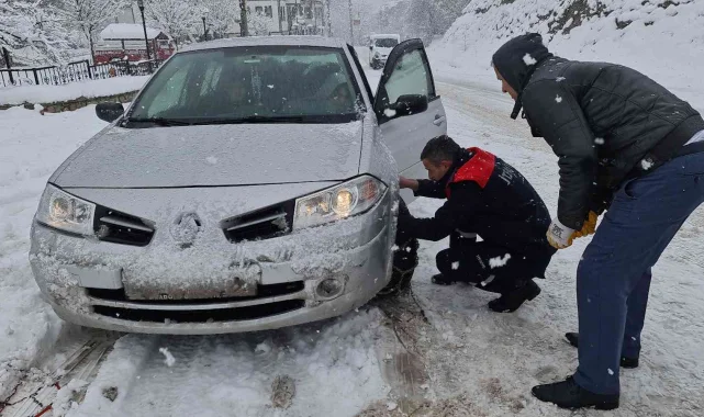 Meteoroloji Genel Müdürlüğünün uyarılarının ardından sabahın erken saatlerinden itibaren bastıran kar yağışı, Karabük'te hayatı olumsuz etkiledi. Kar yağışının şiddetini arttırmasıyla beraber Safranbolu'da karla kaplı yolda zincirsiz ilerleyen araçların sürücüleri zor anlar yaşadı. Safranbolu-Bartın istikametine seyir halinde olan bazı araç sürücüleri rampalarda yolda kalırken, bazıları geri dönmek zorunda kaldı. Yoluna devam etmek için zincir takmaya çalışan sürücülerin yardımına Safranbolu Belediyesi İtfaiye Müdürlüğü ekipleri yetişti. Ekiplerin yardımcı olmasıyla birlikte sürücüler yoluna devam etti.