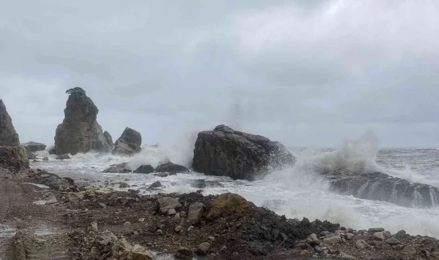 Bartın'da sağanak yağış ve şiddetli rüzgar etkili oluyor. Bartın'ın Karadeniz'e kıyı Amasra ilçesinde kuvvetli rüzgarla birlikte denizde dev dalgalar oluştu. Küçük Liman mevkiinde kayalıklara vuran dalgaların boyları 5 metreye kadar ulaştı.