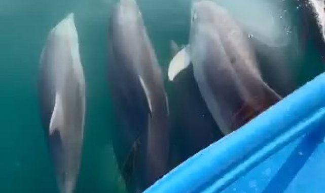 Son zamanlarda yunus ölümleriyle dikkati çeken Sinop'tan nefes aldıracak görüntüler geldi. Sinop sahillerinde karaya vuranların aksine bu yunuslar denize açılan bir balıkçı teknesine eşlik etti.