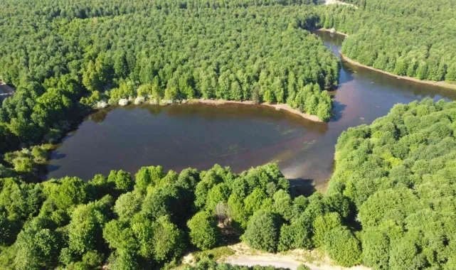 Yalova'nın Çınarcık ilçesinde bulunan Karlık Yaylası'nda kar sularından oluşan gölet ve orman manzarası görsel şölen sunuyor.