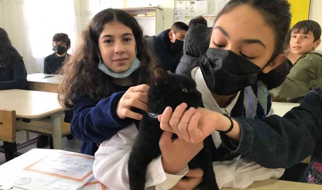 Karam ismini verdikleri kediyi sahiplenen öğrenciler ders aralarında karam ile yakından ilgileniyorlar.