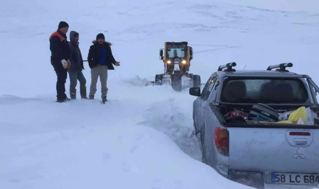 Sivas'ta dün başlayan yoğun kar yağışı etkisini sürdürmeye devam ediyor. Gürünün Koyunlu köyüne giderken kara saplanan 2 araç ve 10 kişi kapanan yolda ilerlemekte güçlük çekti. Durumun bildirilmesi üzerine vatandaşların yardımına koşan İlçe Özel İdare Ekipleri yol açma çalışması gerçekleştirdi. Yolun açılmasının ardından vatandaşlar bulundukları yerden kurtarıldı.