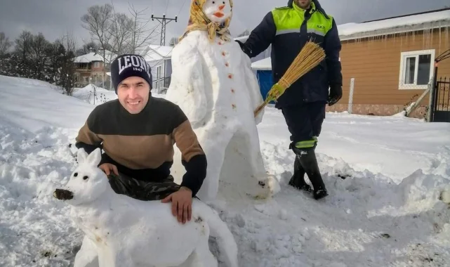 Bilecik'in Pazaryeri ilçesine bağlı Burçalık köyünde yaşayan iki kardeşin kardan yaptığı Şukufe teyze ve köpeği köylünün maskotu oldu.