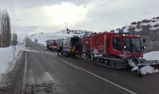 Karlı bölgedeki kalp hastasına paletli ambulans ile ulaşıldı