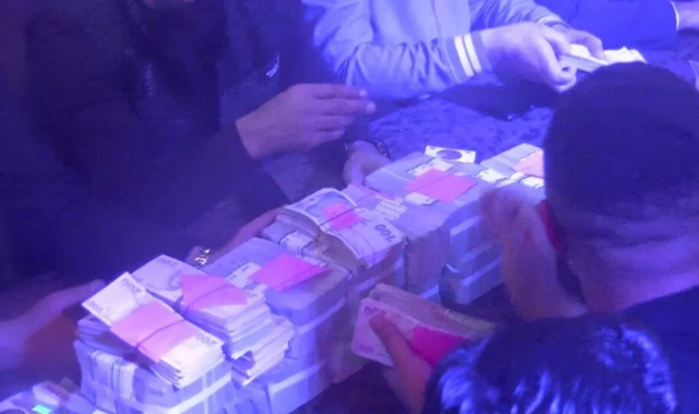 Balya balya paralar sayımın ardından bavullara konularak salondan çıkarıldı.