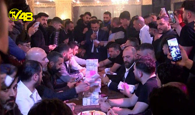 Sünnet düğününde takılan paralar bir masının üzerinde toplandı.