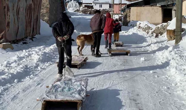 Bir süre kaydıktan sonra yorgun düşen çocuklar, kızaklarını kucaklayarak evlerinin yolunu tuttu. Çocukların mutlulukları ise yüzlerine yansıdı.