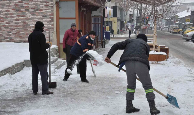 Kars'ta kaldırımların buz ve karı temizleniyor