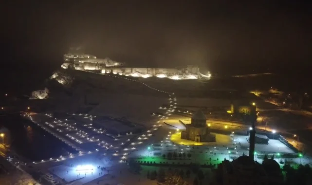 Vadide eğlenen vatandaşlar ve sis altında kalan tarihi Kars Kalesi ile Havariler kilisesi havadan görüntülendi. Kar yağışı ve sisle birlikte Kars Kalesi görenleri etkiledi.