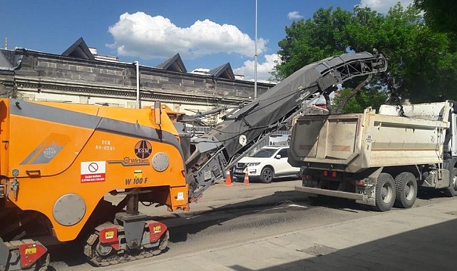 Atatürk ve Halitpaşa Caddelerinde asfalt söküm çalışmaları devam ederken, sökülen asflatın yerine BTK (Bitümlü Sıcak Karışım) asfalt atılacak.