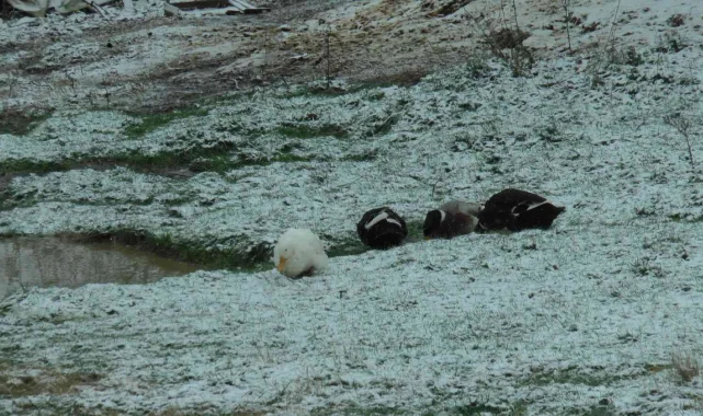 Kartal Aydos'ta kar yağışı başladı, tadını ördekler çıkardı