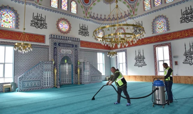 Çalışmalar sonrasında gül suyu serpilen cami zeminleri, Ramazan ayı öncesinde güzel kokular ile cemaatine hazırlanıyor. Ekipler, ibadethanelerdeki temizlik çalışmalarının yanı sıra avlu ve çevre temizlikleri ile tuvaletlerin bakımını da yapıyor.