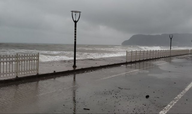 Kastamonu'nun Cide ilçesinde sağanak yağış ve lodos etkili oluyor. Denizde 5 metreyi aşan dalgalar sahili dövdü.