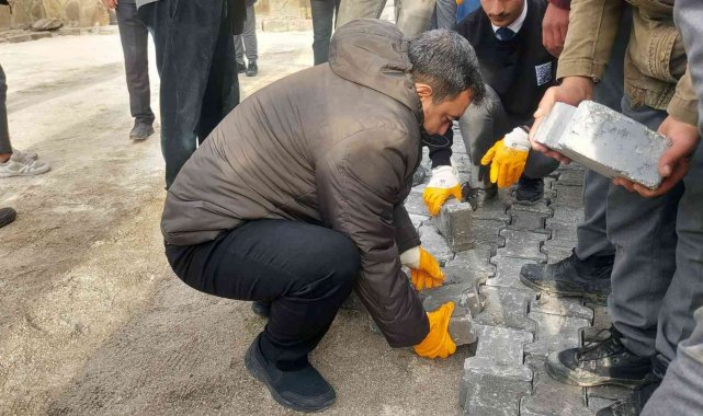 Ağrı'nın Diyadin ilçesinde kurulan kilitli parke taşı tesissinde üretilen taşlar ilk Cemal Kaya Anadolu Lisesi bahçesine döşendi.