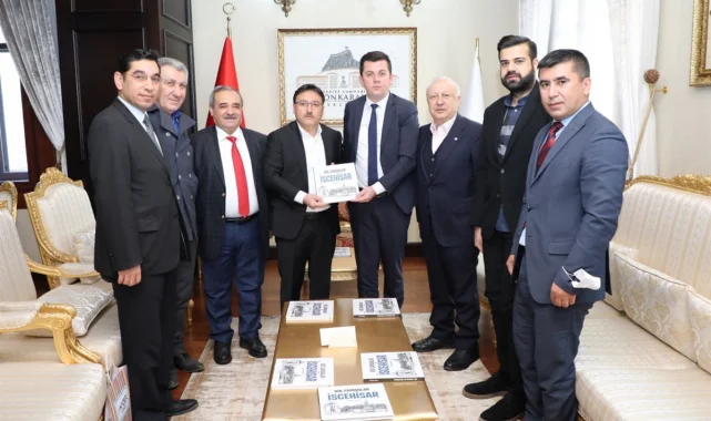 Vali Gökmen Çiçek'i ziyaret eden İscehisar Mermer İhtisas OSB Yönetim Kurulu Başkanı Kaymakam Uğur Kapar ve beraberinde yönetim kurulu üyeleri, arşiv niteliği taşıyan bu kıymetli eseri takdim etti.