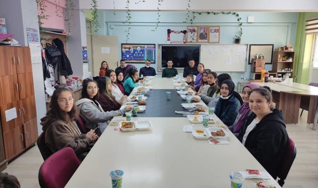 Kaymakam Ömer Sirkeci, 8.sınıf öğrencilerinin LGS hazırlıkları kapsamında açılan DYK kurslarının öğle arasında öğrenci ve öğretmenlerle bir araya geldi. Öğrencilerle yenilen yemeğin ardından samimi bir ortamda söyleşi gerçekleştirildi.
