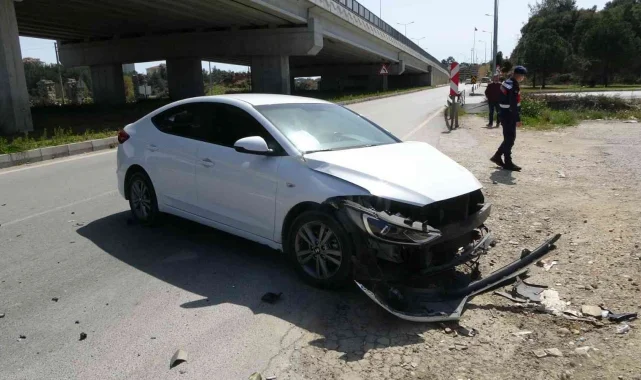 Kaza yaptığı otomobilden kendini dışarı zor attı