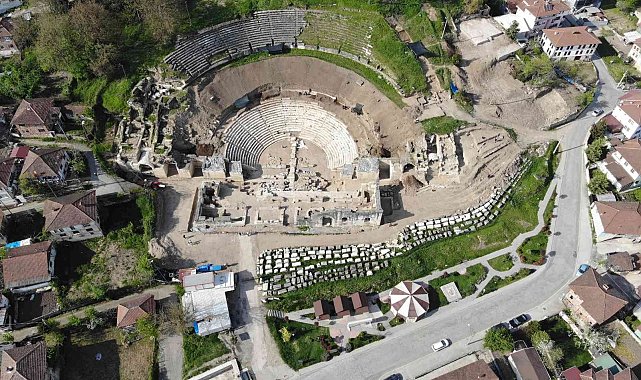 DÜZCE (İHA) – Tarihi, M.Ö. 3'üncü yüzyıla uzanan Prusias Ad Hypium Antik Kenti'nde, toprak altındaki eşsiz mimari arkeologların gayretli çalışmalarıyla gün yüzüne çıkarılıyor. Arkeolog Güldemet Yıldız Dursun, Prusias Ad Hypium Antik Kenti'nin diğer antik kentlerden farklı olduğunu belirterek, "Efes'te tiyatroya gider sonra evinize dönersiniz. Ama Konuralp'te tiyatronun karşısındaki evde konakladığınızda Prusias tiyatrosuna bakan bir sabaha