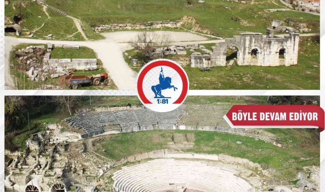 Batı Karadeniz bölgesinin tek antik kenti olma özelliği taşıyan Prusias Ad Hypium Antik Kentinde tarihi kazılar sürüyor. Düzce Belediyesi kazı çalışmalarına başlamadan önce çekilen bir fotoğraf ile son çalışmalar sonrasında ortaya çıkanlarla ilgili bir paylaşım yaptı. 'Böyle başladık, Böyle devam ediyoruz' diyerek paylaştığı görsel ile kazı çalışmalarında gelinen yol gösterildi. Çalışmaların olumsuz hava şartlarına rağmen aralıksız devam ettiği kazı çalışmalarının kısa süre içerisinde tamamlanıp restorasyon çalışmalarının başlaması bekleniyor.