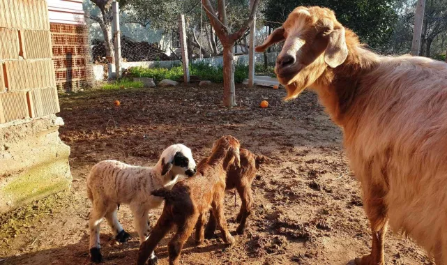 Aydın'ın Kuyucak ilçesinde bir keçi üçüz doğururken, yavrulardan birinin kuzu olması hem sahiplerini, hem de görenleri şaşırttı.