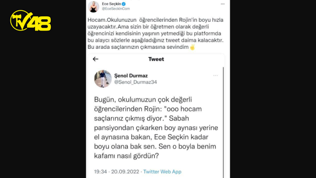 Twitter'da Senol_Durmaz34 isimli kullanıcı sosyal medya hesabından yaptığı paylaşımda öğretmen olduğunu belirterek "Bugün, okulumuzun çok değerli öğrencilerinden Rojin: "Ooo hocam saçlarınız çıkmış diyor." Sabah pansiyondan çıkarken boy aynası yerine el aynasına bakan, Ece Seçkin kadar boyu olana bak sen. Sen o boyla benim kafamı nasıl gördün?" şeklinde esprili bir paylaşım yaptı.